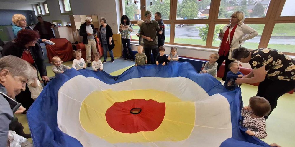 Torkovo deževno dopoldne so našim najmlajšim popestrili stari starši. Otroci so se jih razveselili in z njimi hiteli raziskovati kotičke igralnice. Strokovne delavke smo za njih pripravile sajenje sončnic, skupaj pa bodo doma spremljali rast rože in zanjo skrbeli. Kasneje so na skupnem hodniku preizkusili še čutno pot in se poigrali z velikim, barvnim padalom. Kako ponosni so bili otroci, da so lahko babicam in dedkom prikazali igro v vrtcu.
